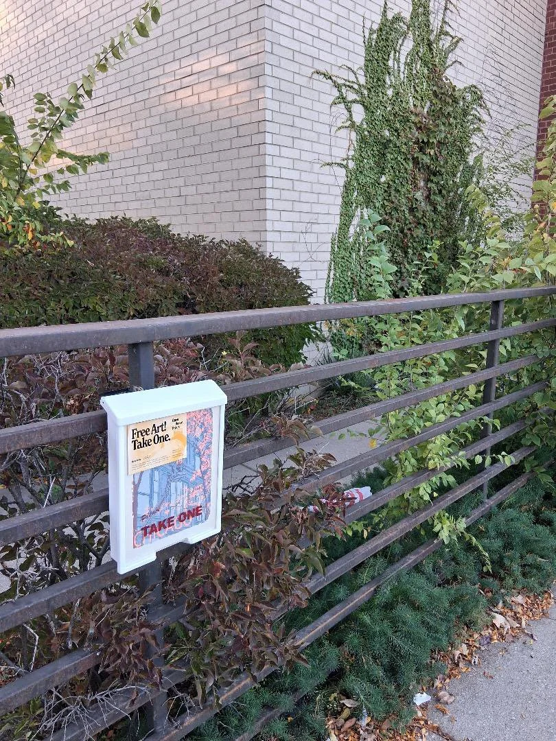 Revisiting icons and symbols as carriers of meaning, Loring Taoka’s / heart void reimagines the - (literal/figurative hole, black hole, etc.) emoji as a heart. This new interpretation looks at the void as a space for endless possibilities, as something to not only stare into, but a thing to love. The heart void pairs fearfulness and fearlessness together in an emotive experience; opposing or complex feelings can and do exist simultaneously, and that’s alright. It’s okay to be afraid and excited and nervous and worried and happy and sad. Give yrself permission. Below the window: Sean P. Morrissey’s Flag Field #01 arranges more than 1200 marking flags into a grid where WELCOME emerges but remains only partly legible. The word shifts in and out of clarity, echoing suburban signs that signal both hospitality and boundaries, and reflecting the instability of identity and belonging in these spaces. Multiplied into a field, the flags recall the sameness of suburban housing developments, where individuality exists only within predetermined limits. The attempt to write WELCOME interrupts this order, suggesting difference within repetition. The installation imprints a temporary geometry that questions how individuality survives within systems built for uniformity.