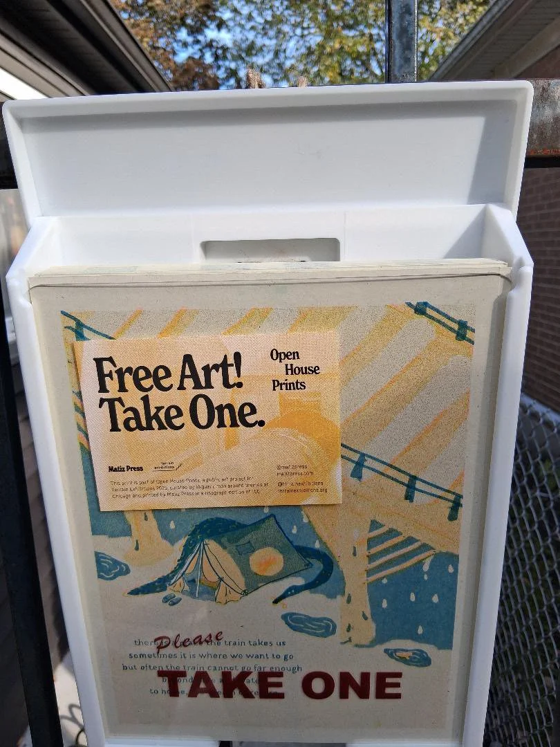 This print is part of Open House Prints, a public art project for Terrain Exhibitions 2025, curated by Miguel Limón around themes of Chicago and printed by Matiz Press in a risograph edition of 150.