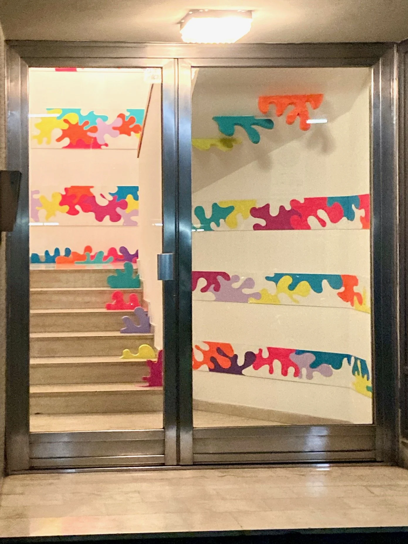 Living Thresholds transforms the entrance into a living horizon. Painted panels unfold as luminous membranes, guiding steps while suspending them, creating a rhythm of fullness and emptiness. Here there is no vertical rigor seeking to dominate, but a horizontal openness that welcomes and expands: a breath recalling earth, body, and the ancestral memory of creation. Rooted, uterine, profoundly human, the work offers itself like a love that overflows without diminishing—light extending outward to those who pass. Architecture becomes a living organism shifting with light, everyday passage becomes revelation, and each crossing becomes an act of wonder.
